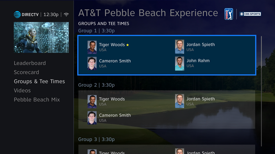Below (left) is an example of a Movie Info Screen, which provides data about the movie, other showings, etc. Likewise, the PGA App (to the right) provides data about the tournament.