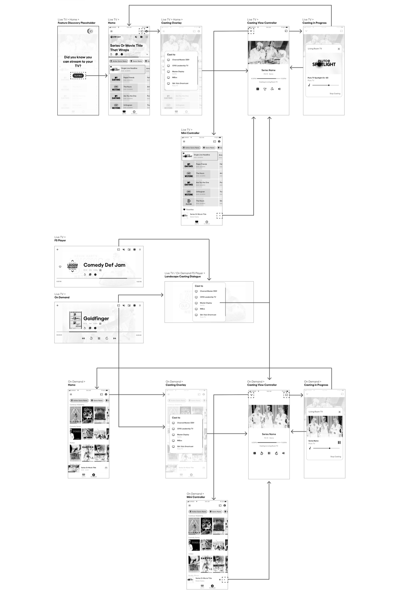 For the Android experience, I followed platform guidelines to make sure casting felt smooth and native. I designed flexible layouts that worked across phones, tablets, and foldables, using familiar Android patterns like swipe-back navigation and a persistent mini-player. Core features like casting, media controls, and full-screen playback were all prototyped using Google Cast SDK best practices. I also provided clean, dev-ready assets with clear interaction notes, and worked closely with engineers through QA to make sure everything worked across different devices, screen sizes, and OS versions.