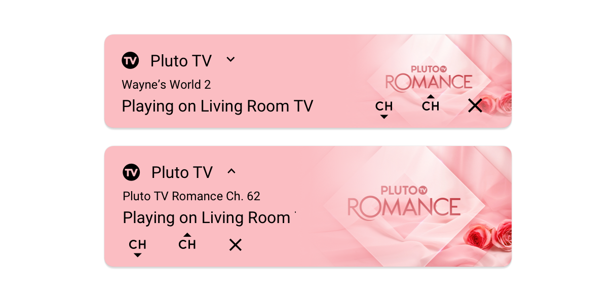 After reviewing Android Development guidelines, I designed two types of user-friendly casting notifications for Live TV and Video on Demand (VOD) in Figma, available in expanded and collapsed formats with program artwork. These notifications allow seamless TV management and multitasking on mobile devices, ensuring full compatibility with Android standards.